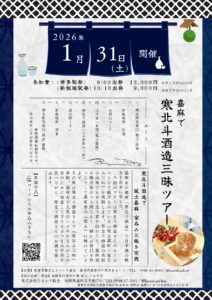 嘉麻で寒北斗酒造三昧ツアー 2025.12.23 イベント詳細 日付: 2026年1月31日 嘉麻で寒北斗三昧ツアー 日 時:令和8年1月31日(土)①博多駅9:00出発 ②新飯塚駅10:10出発 参加費:①博多駅発 13,000円 ②新飯塚駅発 9,000円 ↓お申込みはこちらより↓ お申込みフォーム 【わくわく】嘉麻の城山deハッピーウォーク 前の記事